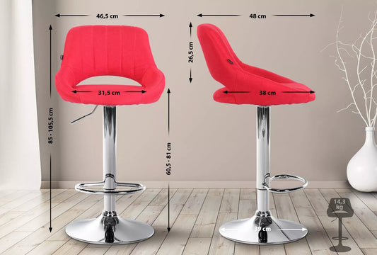In And OutdoorMatch Barkruk Dannie Rood Chroom - Stof - 60-81cm zithoogte - Ergonomische barstoelen - In hoogte verstelbaar - Set van 1 - Met rugleuning - Voor keuken en bar