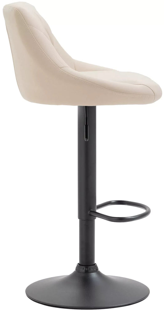 In And OutdoorMatch Leren barkruk Ursula - Creme zwart - Zithoogte 60-81 cm - Ergonomische barstoelen - In hoogte verstelbaar - Set van 1 - Met rugleuning - Voor keuken en bar