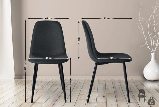 In And OutdoorMatch Eetkamerstoel Valeriana - Zwart - Set van 4 - Eetkamerstoel - Stof - Hoge kwaliteit bekleding - Decoratieve stoel - Stijlvolle eetkamerstoel