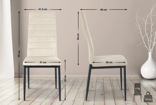 In And OutdoorMatch Eetkamerstoelen Hailie - Crème - Set van 4 - Fluweel - Hoogwaardige bekleding - Luxe eetkamerstoelen - Stijlvolle uitstraling