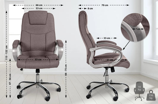 In And OutdoorMatch Bureaustoel Nora - Bruin - Stof - Hoge kwaliteit bekleding - Exclusieve bureaustoel - Luxe uitstraling