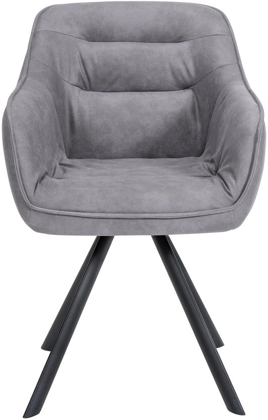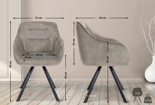 In And OutdoorMatch Eetkamerstoel Alejo - Grijs - Met Armleuningen - Fluweel - Hoogwaardige Bekleding - Comfortabele en Luxe Eetkamerstoel - Vintage Look