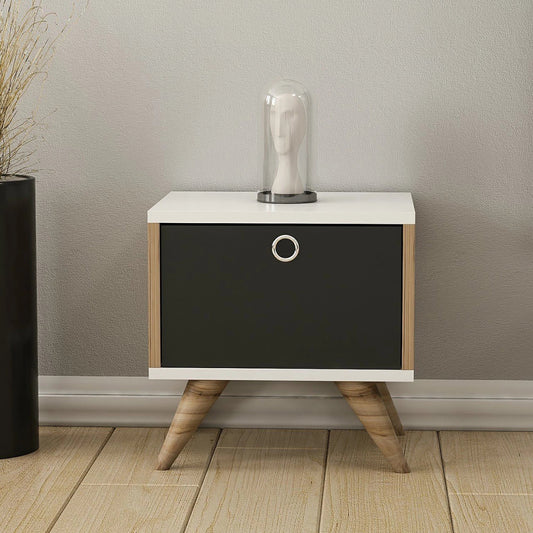 In And OutdoorMatch Nachtkastje Tyler - 41x40x35 cm - Wit, Eikenkleurig en zwart - Spaanplaat - Stijlvol Design