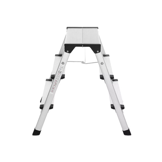 In And OutdoorMatch Haushaltstreppe PRO 3 Stufen Jovey – Küchentreppe klappbar – Silber-Anti-Rutsch – 89 cm – 150 kg