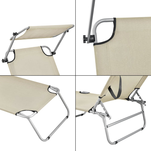 In And OutdoorMatch Sonnenliege Lucas – Mit Baldachin – 186 x 55 x 24 cm – Beige – Verstellbares Baldachin