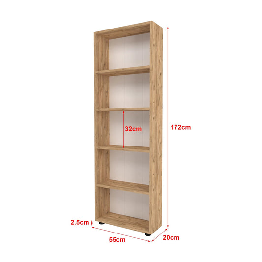 In And OutdoorMatch Bücherregal Jagdish – 5 Schichten – Bücherregal – Wohnzimmer, Schlafzimmer und Kinderzimmer – Holz – MDF – 62 x 24 x 165 cm