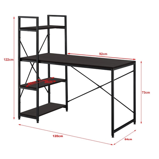 In And OutdoorMatch Schreibtisch Ophelia – Mit 4 Regalen – 120 x 64 x 122 cm – Schwarz und Walnuss – Spanplatte und Metall – Stilvolles Design