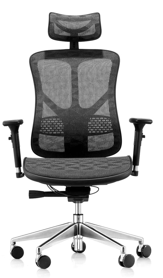In And OutdoorMatch Bürostuhl Ara – Bürostuhl – Ergonomischer Drehstuhl – Netzpolsterung – Verstellbare Kopfstütze – Höhenverstellbar – Rückenlehne, Neigungswinkel bis 110 – Schwarz