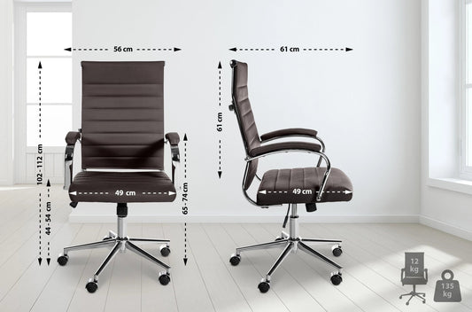 In And OutdoorMatch Bürostuhl Frederic – braunes Kunstleder – mit Rückenlehne und Armlehne – ergonomisch – höhenverstellbar – 46 x 49 x 106 cm