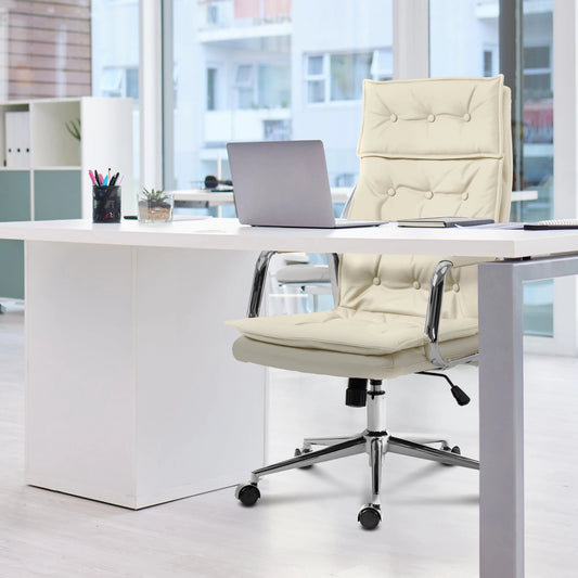 In And OutdoorMatch Bürostuhl Floretta - Creme - Kunstleder - Hochwertige Polsterung - Luxus-Bürostuhl - Exklusiver Look