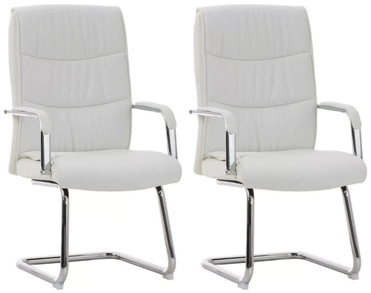In And OutdoorMatch Luxus-Besucherstuhl Onie – Esszimmerstuhl – Weißes Kunstleder – Chrombeine – 2er-Set – Sitzhöhe 48 cm – Deluxe