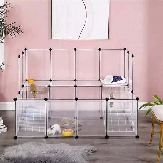In And OutdoorMatch Tierkäfig Sophia – Auslauf für Kleintiere – 2 Ebenen – Weiß – Transparent