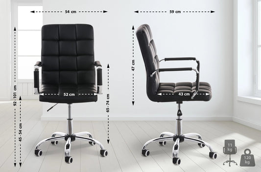 In And OutdoorMatch Bürostuhl Jessamyn – Schwarz – Kunstleder – Hochwertige Polsterung – Luxus-Bürostuhl – Moderner Look