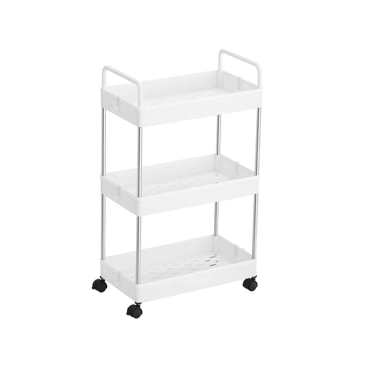 In And OutdoorMatch 3-stufiger Rollwagen Lucas – Küchenwagen – Nischenregal – auf Rollen – platzsparend – Küche – Regal Badezimmer – Wohnzimmer – Büro – 40 x 22 x 60 cm – Weiß