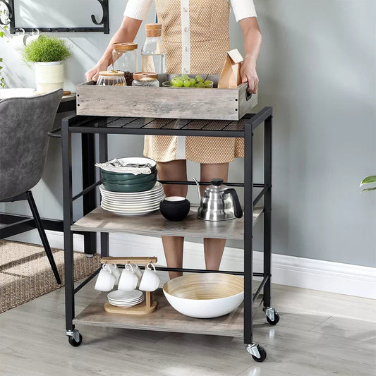 In And OutdoorMatch Servierwagen auf Rädern Kayla – 90 cm – Küchenwagen – Industrie – Servierwagen – Barwagen – Getränkewagen – 4 Tabletts