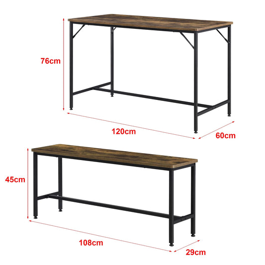 In And OutdoorMatch Esszimmerset Jacklyn – Esstisch mit schwarzen und holzfarbenen Bänken – Stahl und Spanplatte – Modernes Design