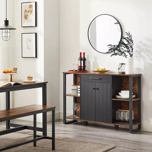 In And OutdoorMatch Sideboard Bethany – Küche – Schrank mit Schublade – Seitenschrank – mit Türen – Multifunktionsschrank – Metallrahmen – für Wohnzimmer – Esszimmer – Flur – Vintage-Braun/Schwarz