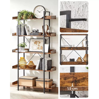 In And OutdoorMatch Bücherregal Tiara – Industrial – 5 Regale – Bücherregal – Wohnzimmer, Schlafzimmer und Kinderzimmer – Holz – MDF