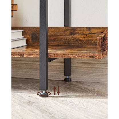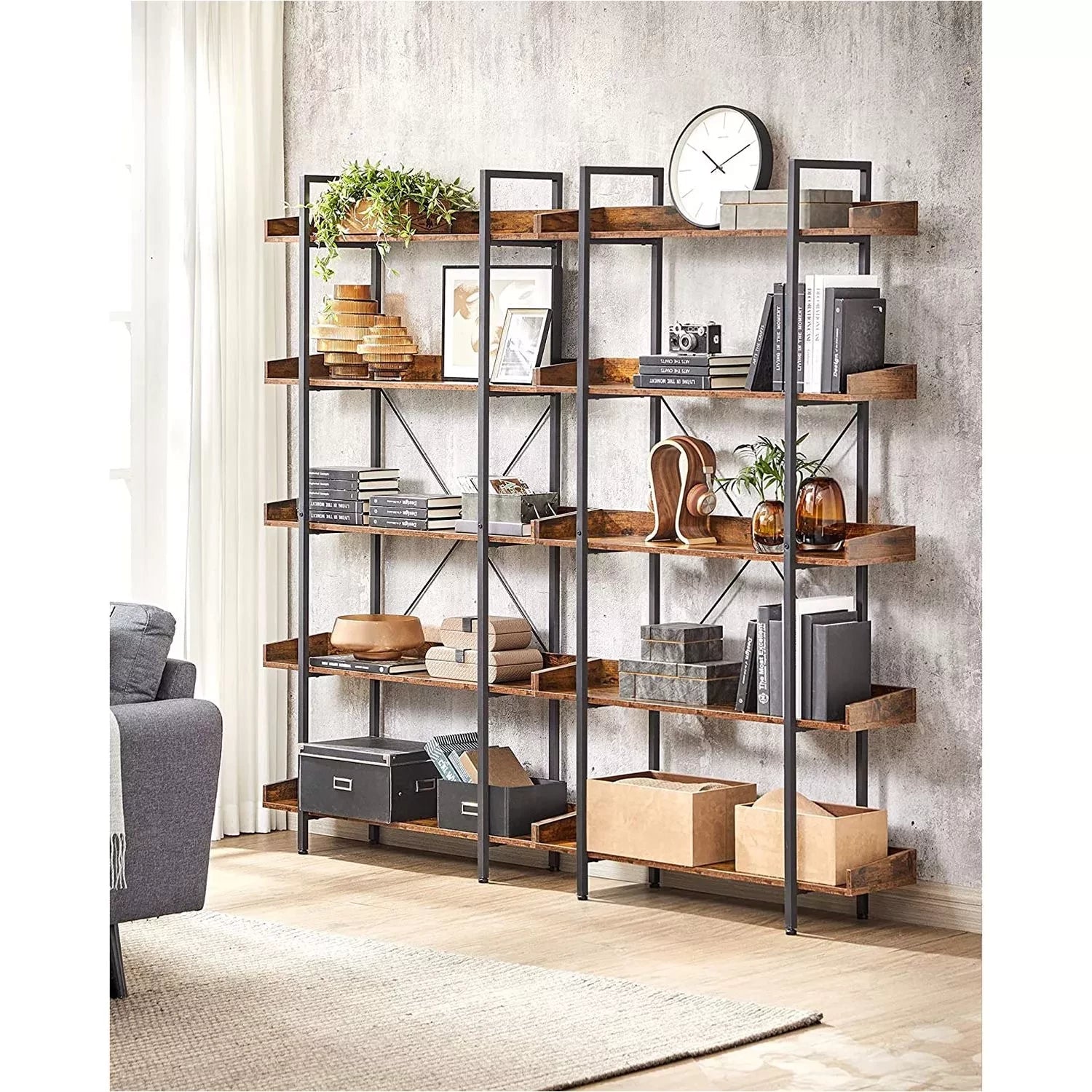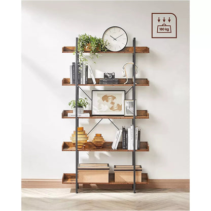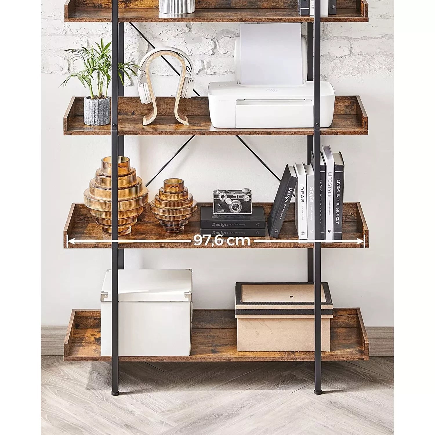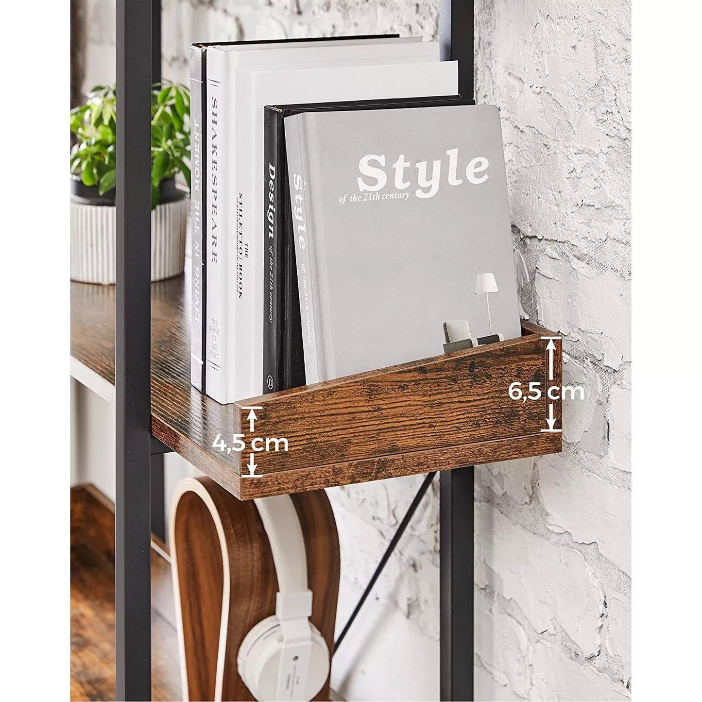 Produktdetails: – Farbe: Vintage-Braun-Schwarz – Material: Spanplatte, Stahl – Maße: 100 x 28 x 178 cm (L x B x H) – Abstand zwischen den Regalen: 36 cm – Gewicht: 19,7 kg – max. statische Belastbarkeit pro Regalebene: 36 kg - max. Gesamte statische Belastung: 180 kg Lieferumfang: - 1 x Bücherregal - 1 x Zubehörpaket - 1 x Kippschutzstütze - 1 x Bedienungsanleitung Inand Outdoormatch Hinweise: - Aus Sicherheitsgründen sollten Kinder nicht darauf klettern oder damit spielen. Befestigen Sie dieses Produkt mit dem mitgelieferten Kippschutz an der Wand.
