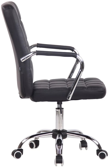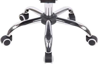 Der Bürostuhl Winston überzeugt durch sein modernes Design und bietet dank der Rückenlehne hohen Komfort beim Arbeiten. Dieser Drehstuhl ist sehr hochwertig gepolstert und mit Kunstleder oder Stoff bezogen. Das elegante Chromgestell und die stabilen geschwungenen Armlehnen mit Bezug verleihen dem Ganzen das gewisse Extra. Die Sitzhöhe ist mit dem Hebel unter dem Sitz stufenlos verstellbar. Der Bürostuhl steht sicher auf einem Metallgestell in Chromoptik mit fünf leichtgängigen Rollen. Egal ob Hartboden oder Teppich, Sie rollen immer leicht und locker über den Boden.