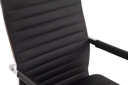 Der Bürostuhl Tito überzeugt nicht nur durch sein modernes Erscheinungsbild, auch in puncto Komfort macht er niemandem etwas vor. Die hochwertige Polsterung und die pflegeleichte Polsterung, beide aus Kunstleder und Stoff, sorgen dafür, dass Sie stundenlang bequem sitzen. Zudem ist die Sitzhöhe stufenlos verstellbar, was ein ergonomisches Sitzen garantiert. Darüber hinaus ist der Bürostuhl mit einer Wippmechanik ausgestattet, die für mehr Bewegungsfreiheit sorgt. Die Stabilität wird durch das Metallgestell mit Chromoberfläche gewährleistet. Dank der fünf leichtgängigen Rollen rollen Sie leicht und locker über den Boden – egal ob auf Hartböden oder Teppichen. Das elegante Chromgestell und die stabilen, geschwungenen Armlehnen verleihen dem Ganzen das gewisse Extra und runden das Design ab.