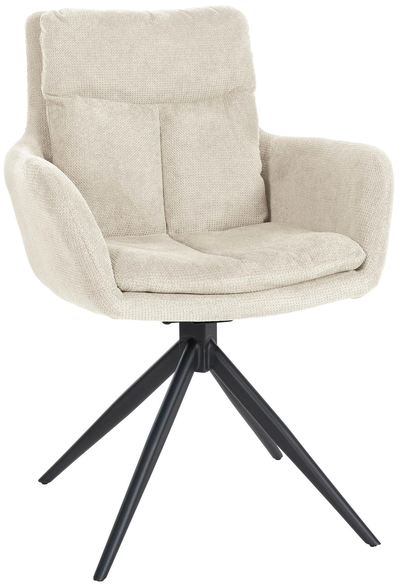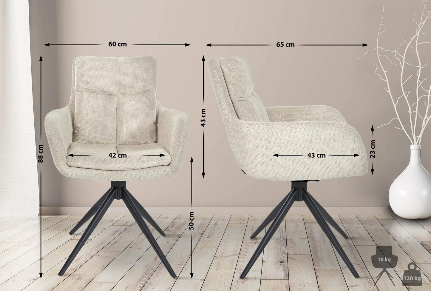 In And OutdoorMatch Esszimmerstuhl Kai – Creme – Stoff – mit Armlehne – hochwertige Polsterung – stilvoller Esszimmerstuhl – Deluxe-Look