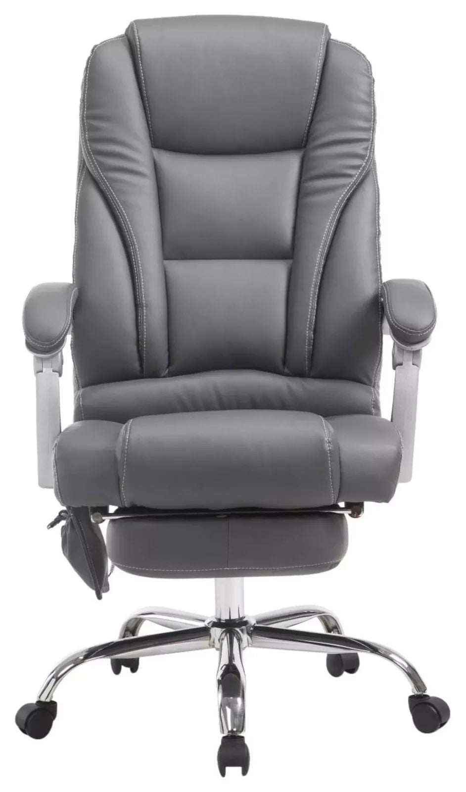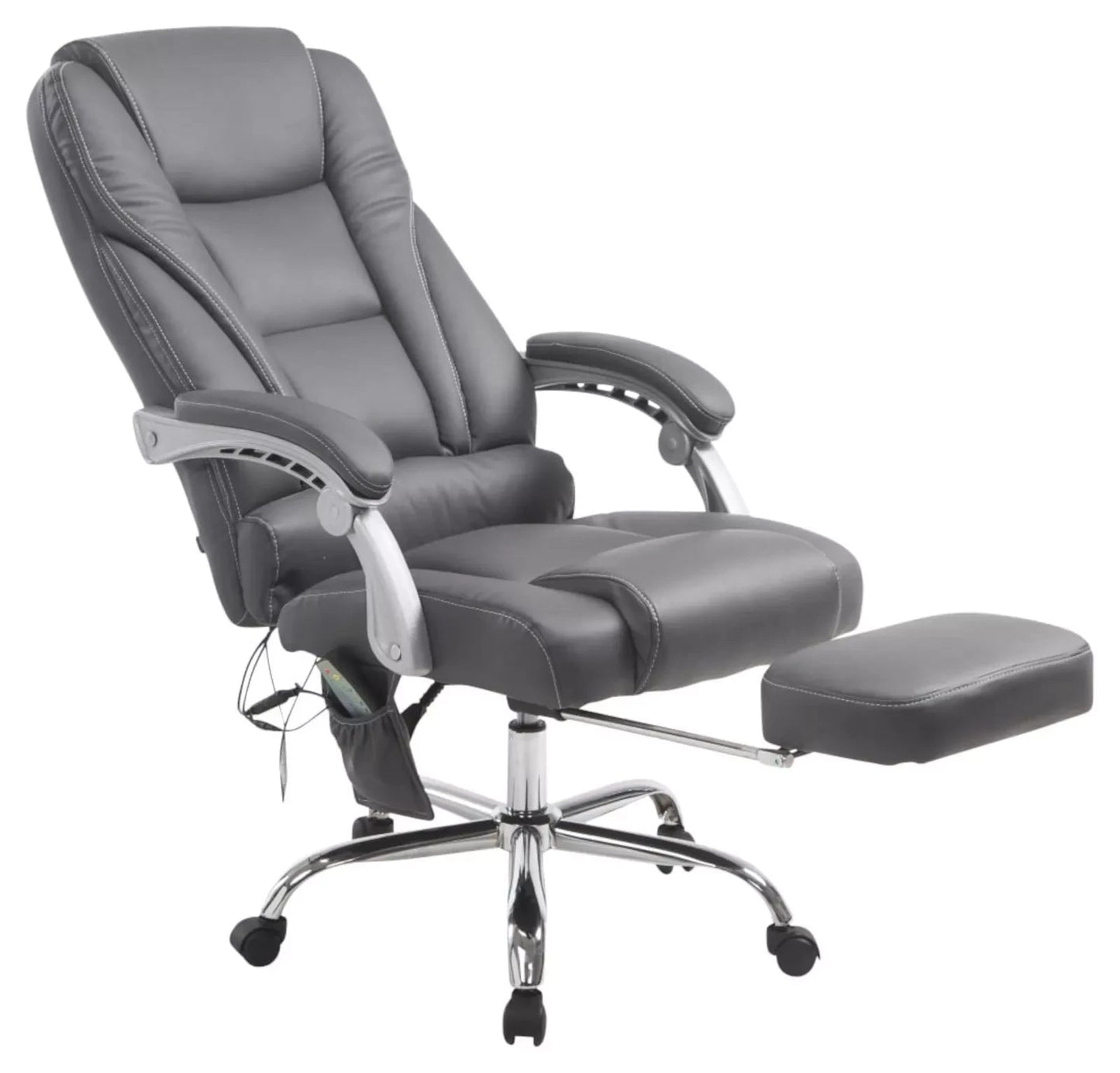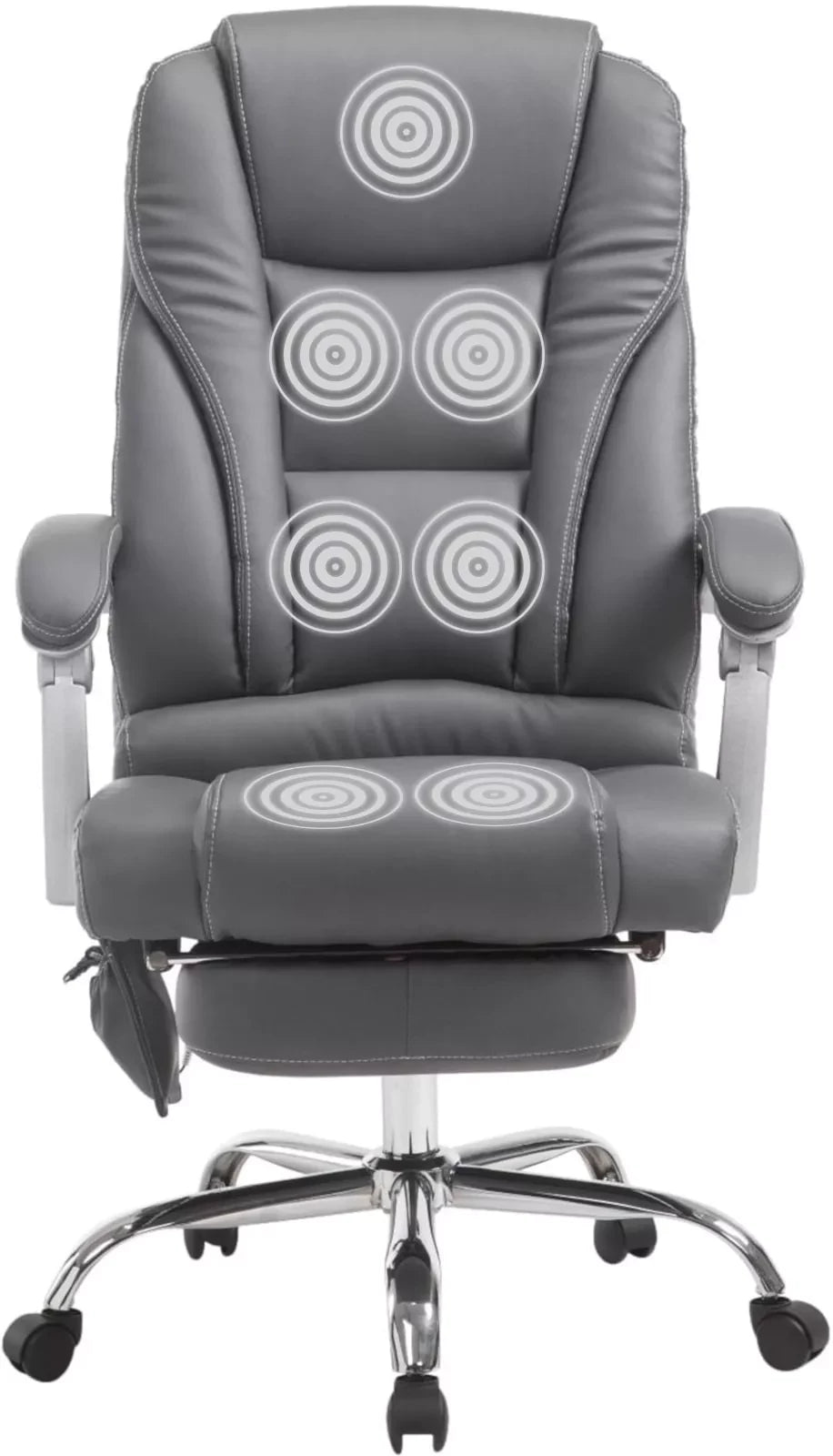 In And OutdoorMatch Ergonomischer Bürostuhl Luz mit Massagefunktion – Lange Rückenlehne – Grau – Sitzhöhe 47–56 cm – Kunstleder – Auf Rollen – Für Erwachsene