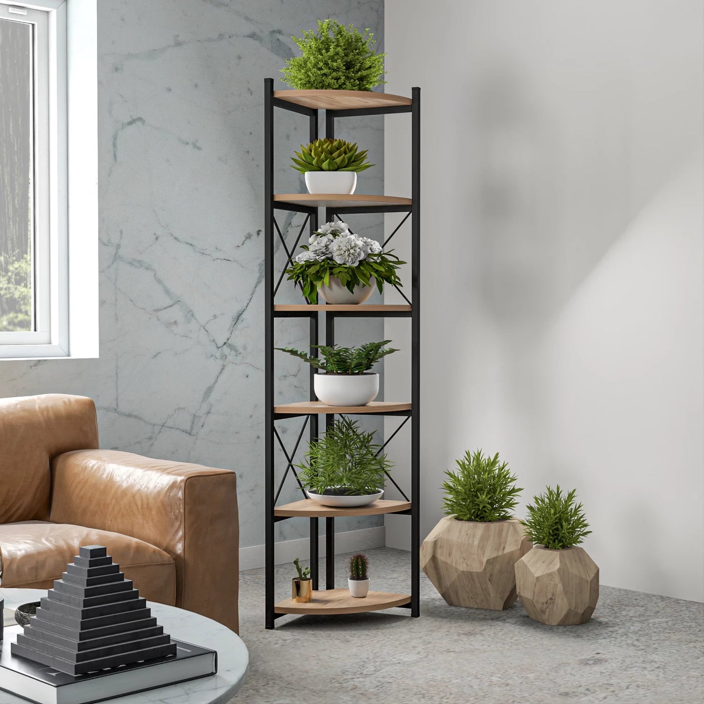 Mit insgesamt 6 Regalböden ist dieses Eckregal ideal für die Präsentation Ihrer Blumentöpfe, Pflanzen und Kräuter. Das Regal eignet sich auch hervorragend zur Präsentation von Dekorationsgegenständen. Der Aufbau ist schnell und einfach, sodass Sie sofort mit der Präsentation Ihrer schönen grünen Freunde beginnen können.