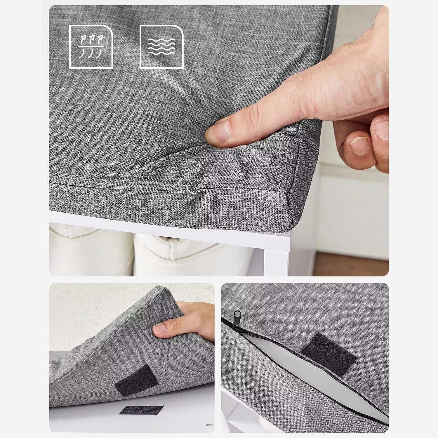 Produktdetails: – Farbe: weiß-grau – Material: Spanplatte, Schaumstoff – Maße: 105 x 30 x 48 cm (L x B x H) – Gewicht: 19,5 kg – max. statische Belastbarkeit: 200 kg Lieferumfang: - 1 x Schuhbank - 1 x Zubehörpaket - 1 x Bedienungsanleitung Inand Outdoormatch Hinweise: - Aus Sicherheitsgründen sollten Kinder nicht auf das Produkt klettern oder damit spielen. - Die maximale statische Belastung der Schuhbank beträgt 200 kg. Überschreiten Sie dieses Maximalgewicht nicht.