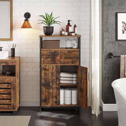 In And OutdoorMatch Bathroom Cabinet Wilbert - 60x30x80cm - Storage Cabinet - Slatted Doors - Open Compartment - Adjustable Shelves - Vintage Brown