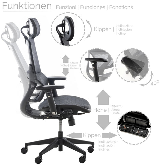 In And Outdoor Match Office Chair Kairo - Ergonomic Office Chair - Adjustable Elements - Mesh Cover - Polyester