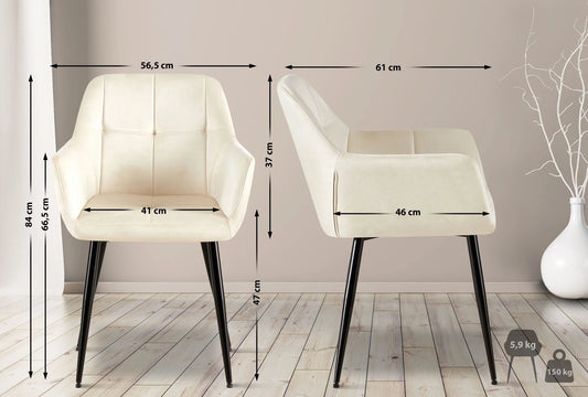 In And OutdoorMatch Dining room chair Deidra - Cream - Set of 2 - Velvet - High-quality upholstery - Luxury dining room chair - Modern look