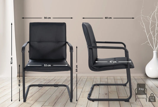 In And OutdoorMatch Visitor chair Silke - Black - Faux leather - High-quality upholstery - Luxury visitor chair - Stylish and modern appearance