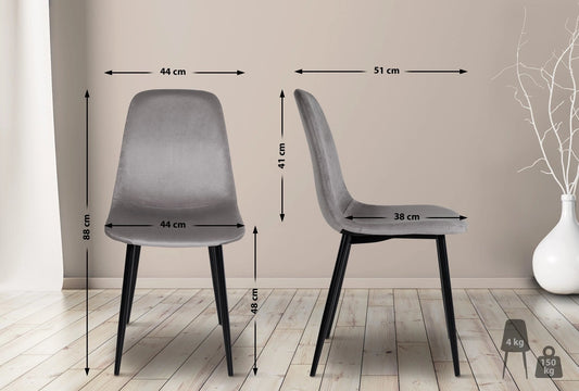 In And OutdoorMatch Dining Room Chair Rosana - Gray - Velvet - High quality upholstery - Luxury Dining Room Chair - Modern look