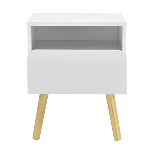 In And OutdoorMatch Bedside Table Sallie - With Drawer - 50x40x34 cm - White and Wood - Chipboard and Pine - Modern Design