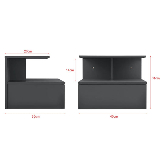 In And OutdoorMatch Floating Bedside Table Valentina - 30x40x29 cm - With 2 Drawers - Black - Chipboard - Stylish appearance