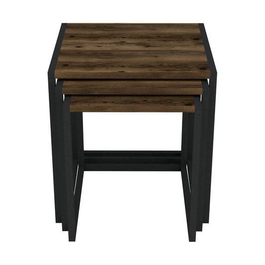 In And OutdoorMatch Side Table Lina - Set of 3 - Black and Wood-colored - Chipboard and Metal - Stylish Design