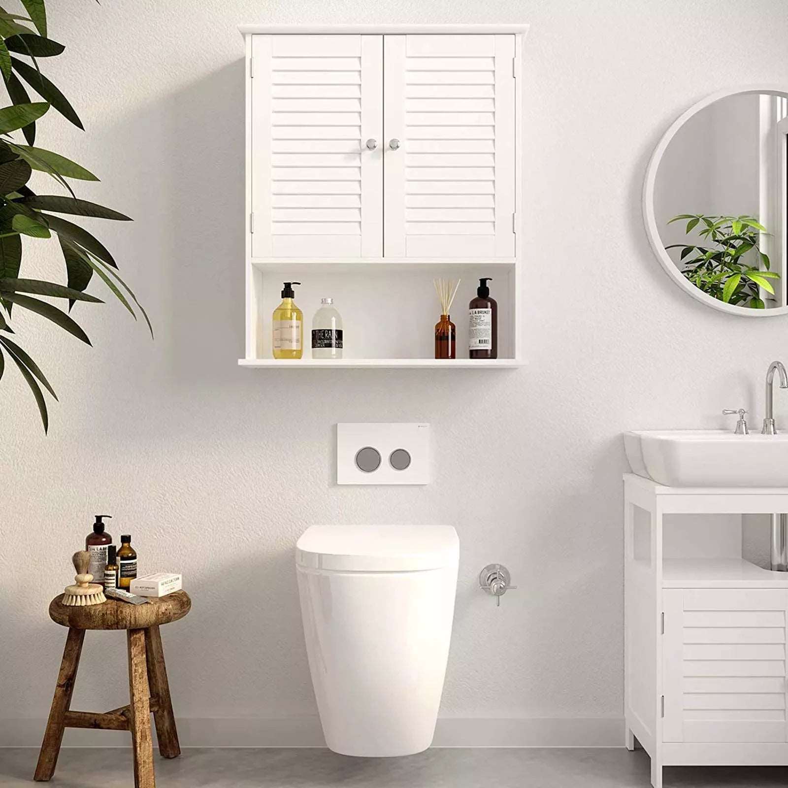 The designers of InandOutdoormatch have created a whole series of bathroom furniture so that you can give your bathroom a fresh and calm look. Here you can let go of all worries, recharge your batteries and start or end your day on a positive note. What are the advantages of this storage cupboard? - The open compartment allows you to store your belongings clearly and quickly and gives you easy access to the hygiene items you need. - The shelf behind the cabinet door is height-adjustable in 5 positions, so you can store hygiene items of different sizes. - The cabinet doors have 2 chrome metal knobs, so you can easily open and close the doors. - The white cabinet brings a touch of freshness and elegance to your bathroom with its simple silhouette. - This cabinet is not only suitable for your bathroom, but also for the living room. You can also hang it in the hallway to store your keys, bags, hats, etc. A modern bathroom deserves this bathroom cabinet! Also view the other Inand Outdoormatch bathroom furniture to create a uniform style in your bathroom. Product details: - Color: White - Material: MDF (Medium Density Fibreboard) - Dimensions: 60 x 20 x 70 cm (L x W x H) - Weight: 9.6 kg - Max. static load capacity: 15 kg - Max. static load capacity per shelf: 5 kg Scope of delivery: - 1 x wall cabinet - 1 x accessory bag - 1 x manual (DE, EN, FR, ES, IT) InandOutdoormatch Notes: - Assemble the product strictly according to the instructions. - This piece of furniture must be mounted on the wall. - The max. load capacity in the text refers to the static maximum weight.