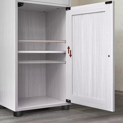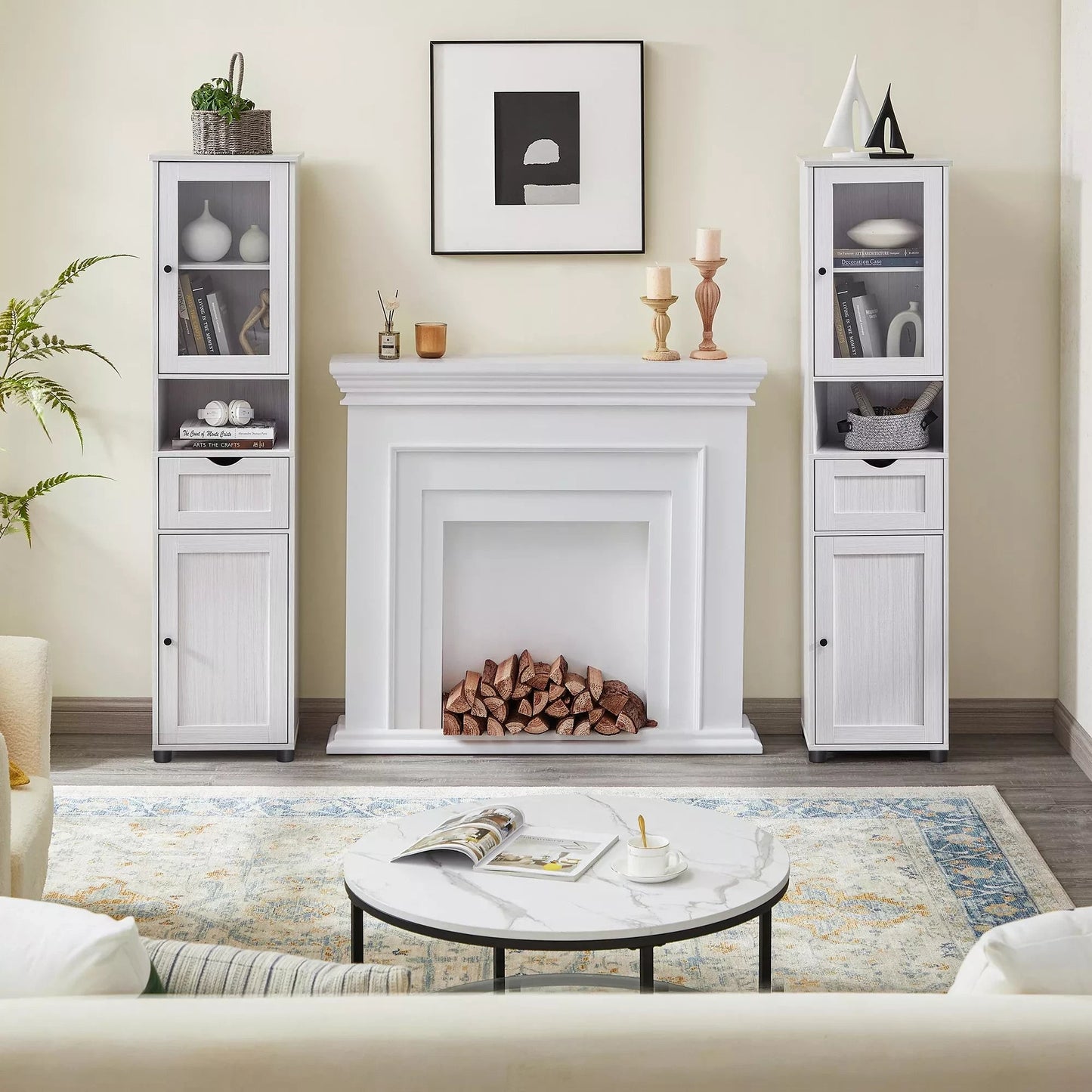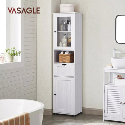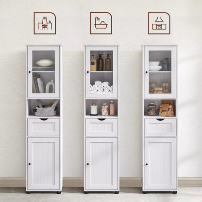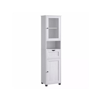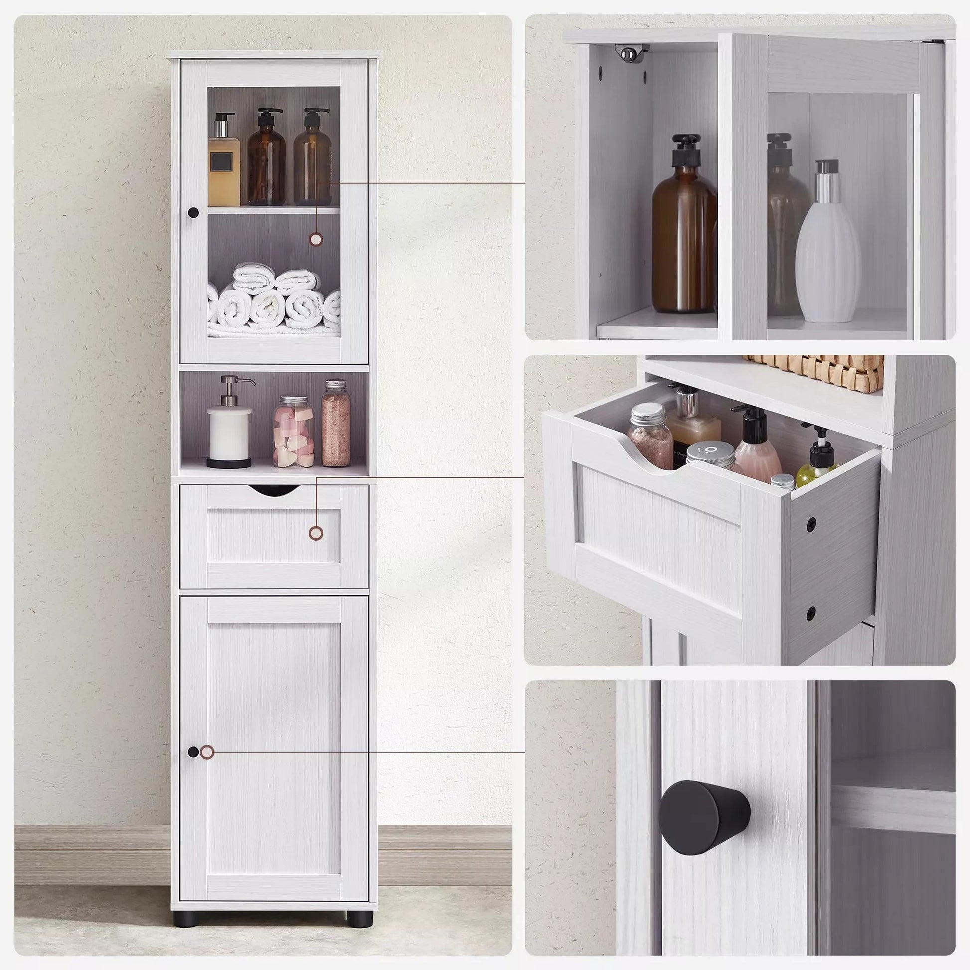 In And OutdoorMatch Bathroom furniture Jamie - High cabinet - Open compartment - Glass door - Narrow - Bathroom furniture - With legs - Height-adjustable shelves - Space saving - White with wood grain