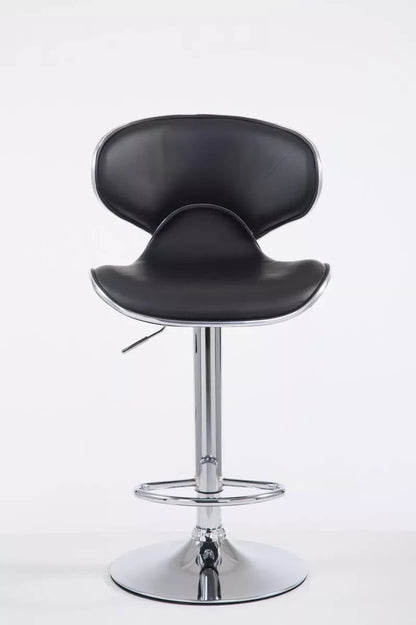 In And OutdoorMatch Bar Stool Grayce - Black/Silver - Chrome - Industrial Design - Backrest - Footrest - Imitation Leather - Upholstered Seat