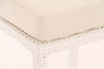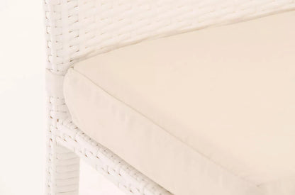 The UV-resistant material polyrattan, which is particularly suitable for outdoor use, resembles conventional rattan fabric, but is much more robust. The high-quality processed polyrattan fibers are waterproof, pleasantly easy to care for and UV-resistant, so that they retain their color depth even with frequent and long-term use. In combination with a light structure, this noble shade provides the absolutely natural appearance of this seating group. The comfortable seat cushion has a cover made of 100% polyester. This is water and dirt-repellent and very durable due to its high durability. The frame or base of the set is made of sturdy, powder-coated aluminum - guaranteed to be stable and permanently rust-free.