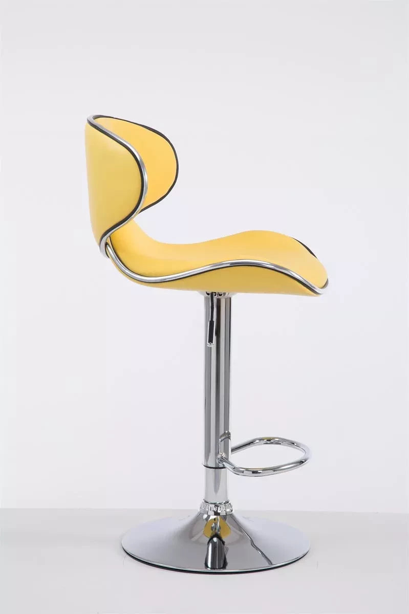 In And OutdoorMatch Bar Stool Lilliana - Yellow/Silver - Chrome - Industrial Design - Backrest - Footrest - Imitation Leather - Upholstered Seat