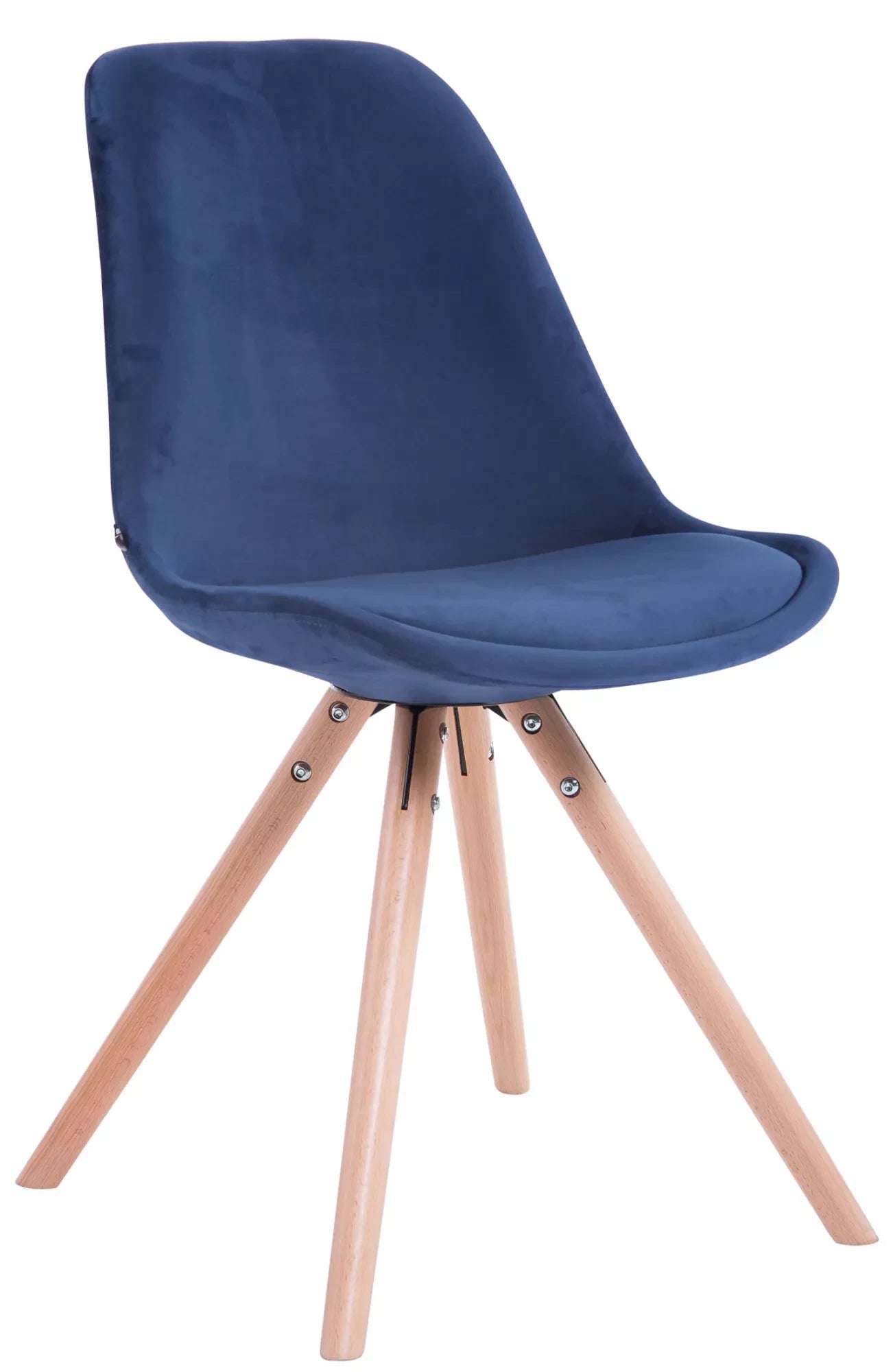 In And OutdoorMatch Visitor chair Gerardo - Dining room chair - Blue velvet - Wooden legs - Set of 1 - Seat height 48 cm - Deluxe