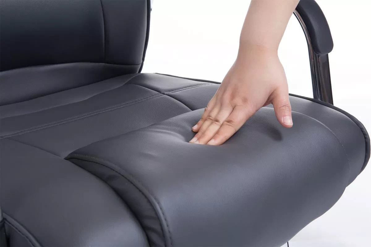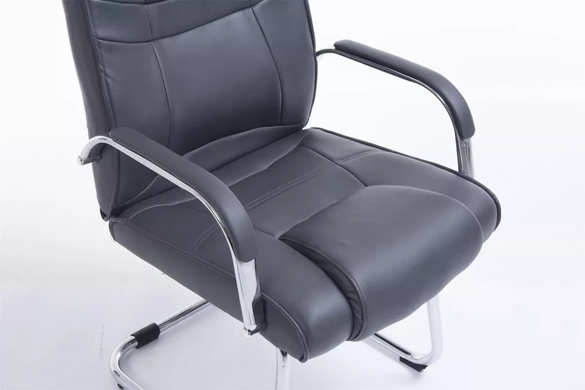 The visitor chair gives any room an exclusive look and impresses not only with its excellent seating properties, but also with its modern design. It swings freely and adapts precisely to the leg length and weight of the seated person. Thanks to the ergonomically shaped seat and comfortably upholstered armrests, even longer sitting does not become strenuous. The comfortable upholstery is covered with artificial leather. The visitor chair stands on the robust and extra reinforced metal frame for any occasion, you just have to choose the right color from our range. This visitor chair is ideal for tall and heavy people, because it can carry a maximum load of 180 kg.
