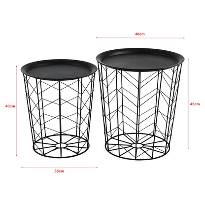 In And OutdoorMatch Side Table Ephraim - Set of 2 - With Removable Table Top - Black - Metal - Stylish basket
