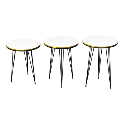 In And OutdoorMatch Side Table Pilfix - Set of 3 - Round - Black and White - Chipboard and Metal - Stylish design