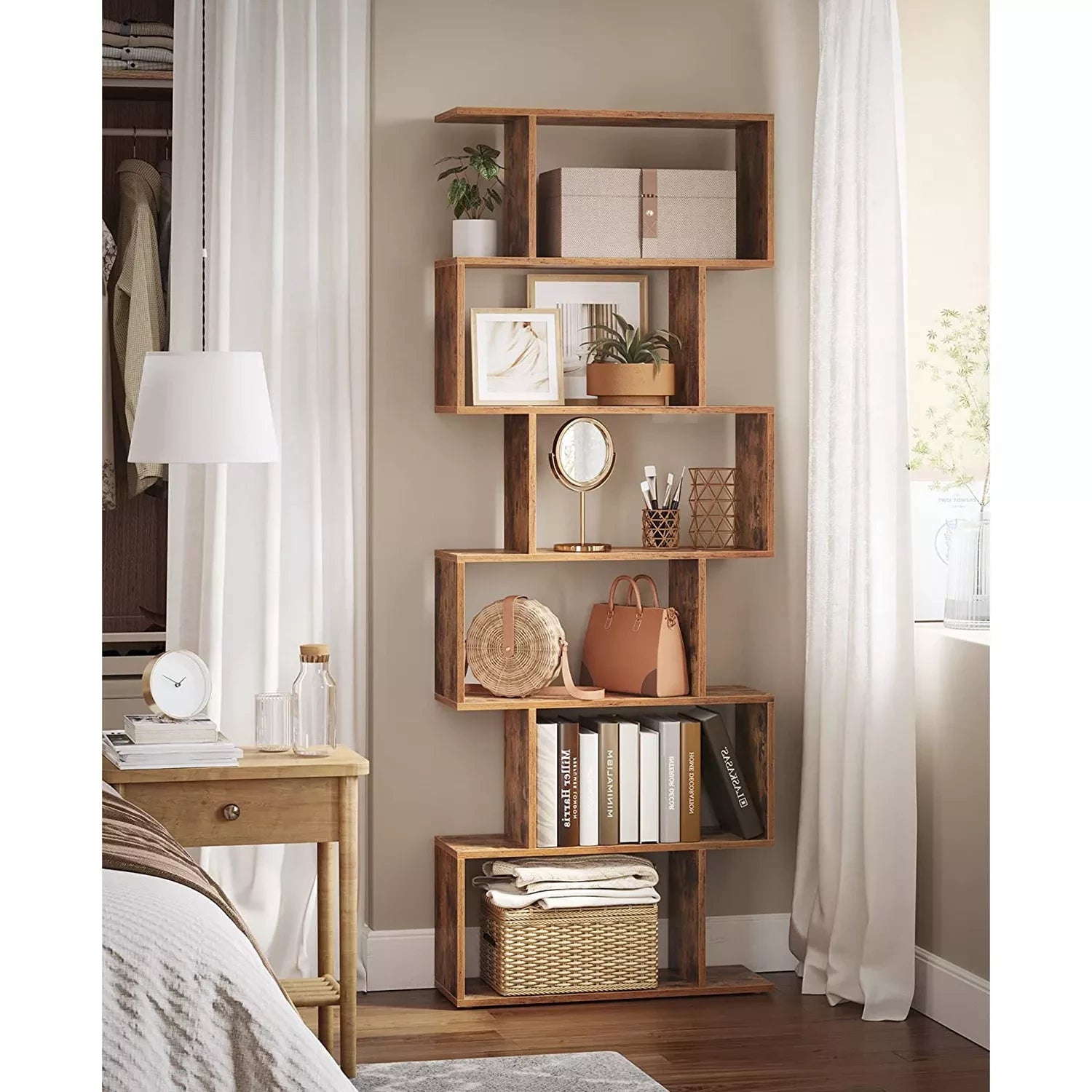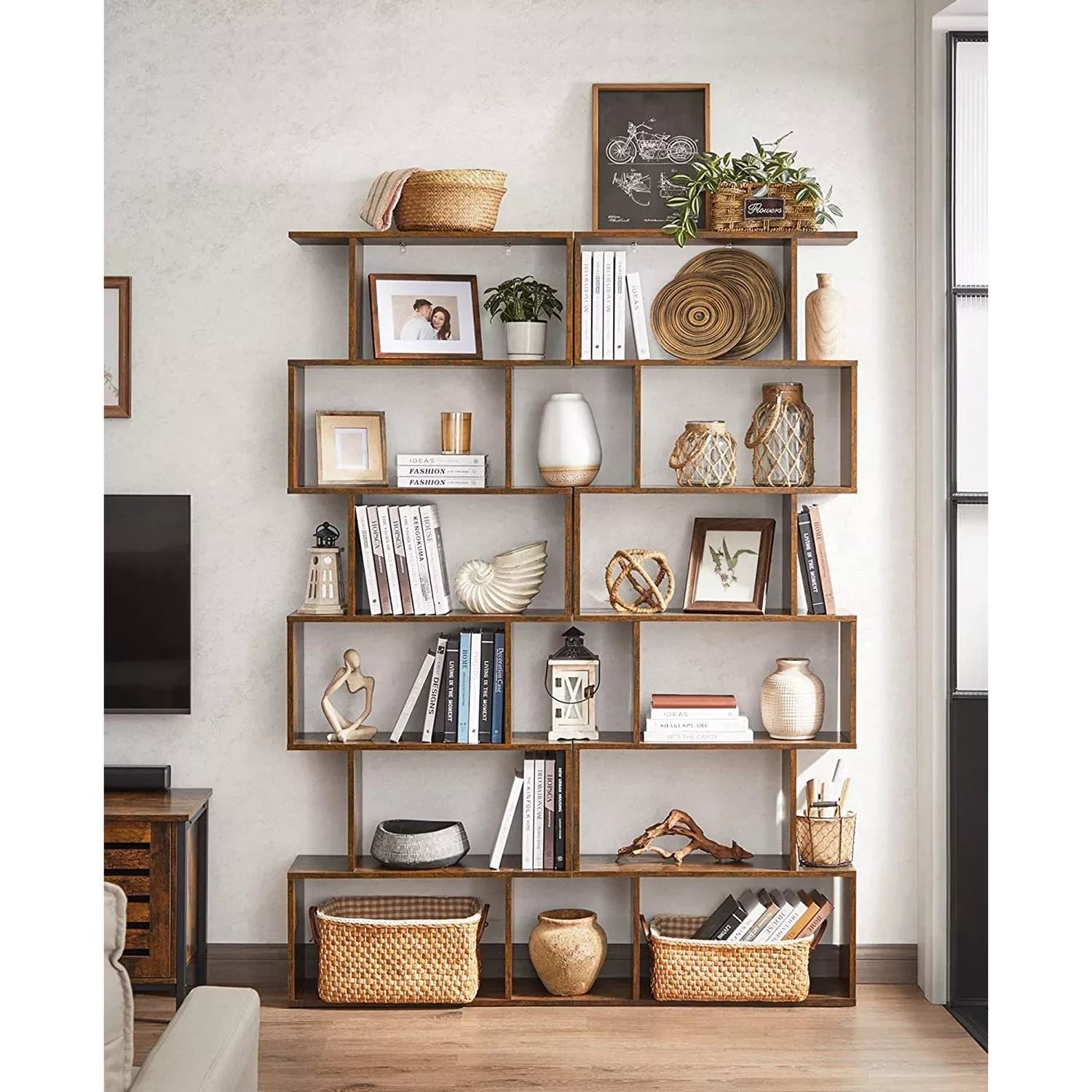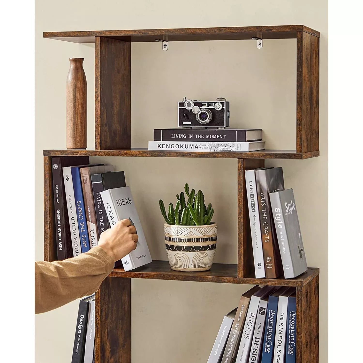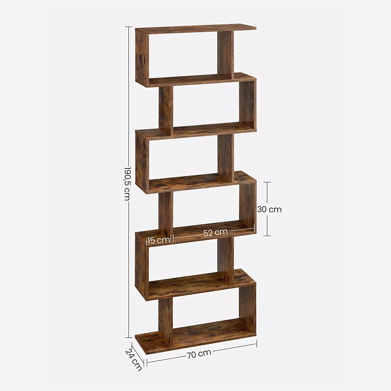 A standing filing shelf or bookshelf is a piece of furniture that expands and maximizes storage space without taking up much space in your office, library, workspace or reading corner. Featuring multiple levels and a chic S-style design, this bookshelf from Inand Outdoormatch gives you the versatility and convenience that DIY designers and decorators are looking for. Our shelving unit is made of sturdy chipboard and decoratively finished with a dark brown finish and can be used as a bookshelf, DVD rack, office or toy rack. It can be decorated with souvenirs, jewelry and treasures, or can store school books, novels, magazines and much more. Why wait? Order your 6-tier shelf today. Product details: - Color: dark brown/vintage - Material: chipboard, melamine veneer - Dimensions: 70 x 24 x 190.5 cm (L x W x H) - Weight: 22 kg - Load capacity per level: 15 kg Scope of delivery: - 1 x bookshelf - 1 x accessory bag - 1 x manual (DE, EN, FR, ES, IT) Inand Outdoormatch Notes: - To clean, wipe with a damp, soft cloth and then wipe with a clean cloth.