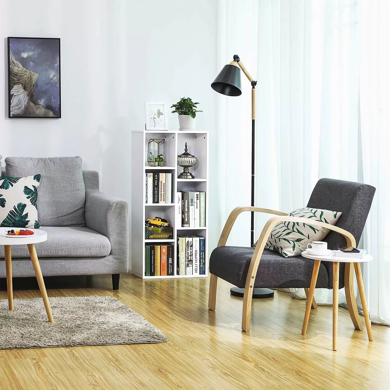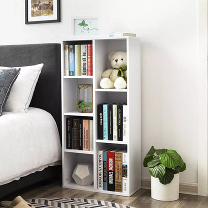 The highlights of this bookshelf: - Straight lines, right angles and sober white; these elements give your home a unique touch - 3 large and 4 small compartments; This shelf can accommodate various objects, large or small - The maximum static load capacity per compartment is 10 kg - The L-shaped iron anti-tip box provides more stability - Clear instructions and the numbered loose parts make it easier to assemble this shelf - The supplied feet protect your floor against scratches Product details: - Color: white - Material: chipboard - Dimensions: 50 x 24 x 106 cm (L x W x H) - Weight: 16.4 kg - Max. static load capacity of the surface: 40 kg - Max. static load capacity per compartment: 10 kg Scope of delivery: - 1 x bookshelf - 1 x accessory bag - 1 x manual (DE, EN, FR, ES, IT) InandOutdoormatch Notes: - Attach this product to the wall with the included anti-tip to ensure safe to guarantee use. - It is recommended to mount the product on the EPE foam used for packaging to avoid bumps and scratches.