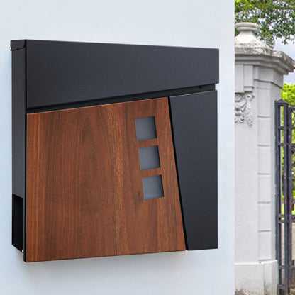 In And OutdoorMatch Letterbox Annamarie - 37x37x105 cm - Anthracite and Wood-colored - Steel - Lockable - Protective flap - With newspaper cover