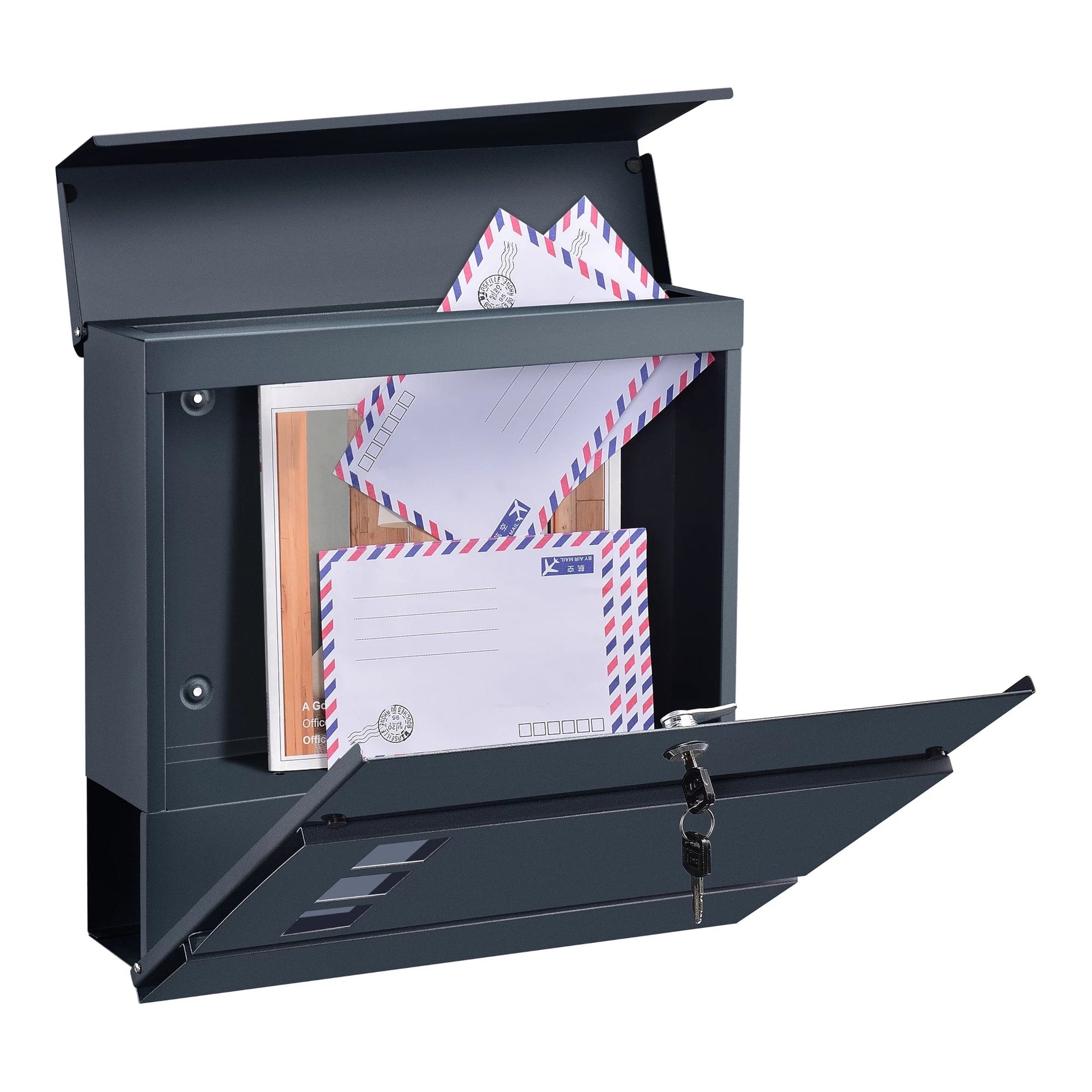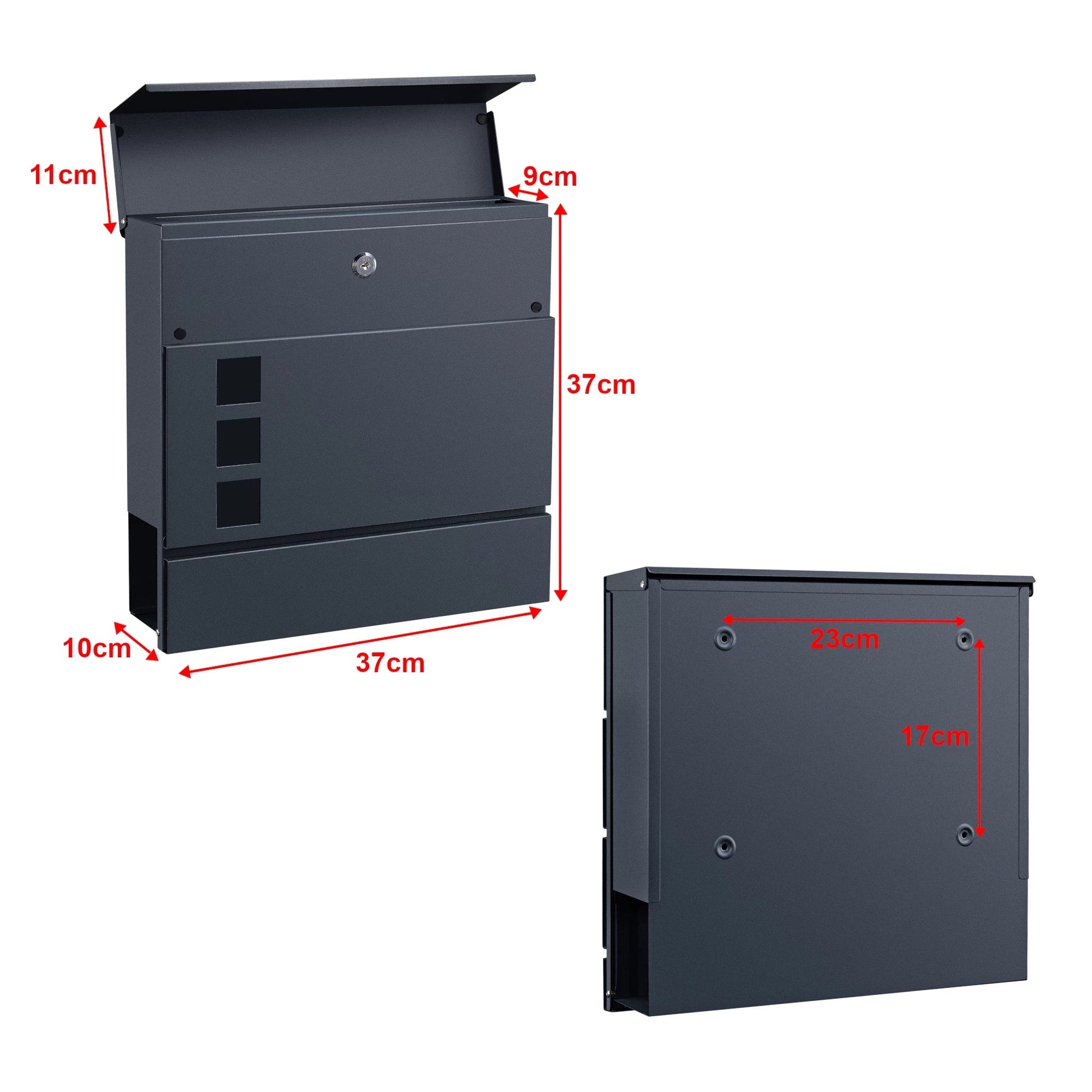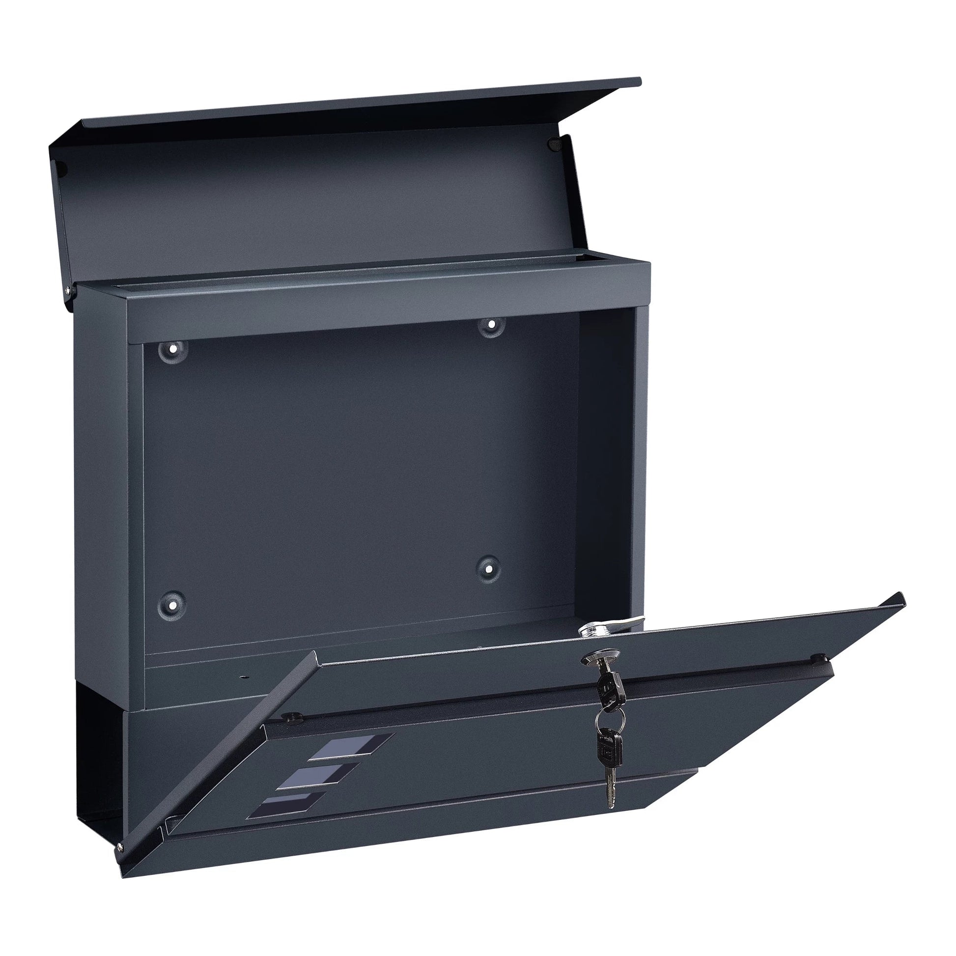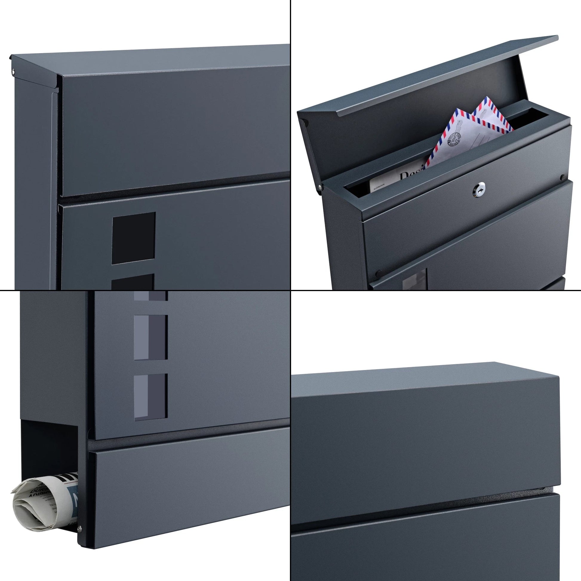In And OutdoorMatch Letterbox Derick - 37x37x10.5 cm - Steel - Anthracite - With newspaper cover - Lockable - Protective flap